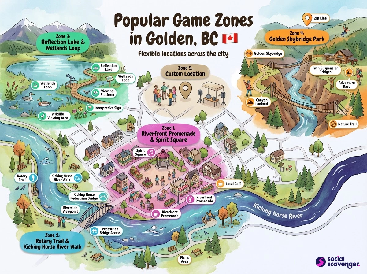 Social Scavenger games in Golden typically take place in scenic outdoor areas and public spaces that offer a mix of nature and accessibility. The town's picturesque backdrop and welcoming community spaces make it an ideal setting for engaging team-building activities.